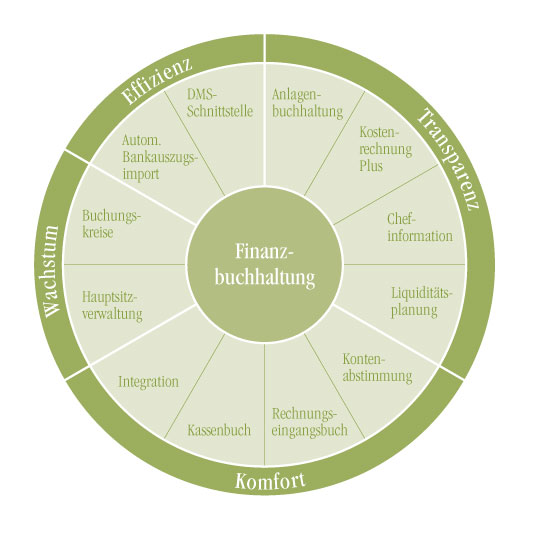 Das eEvolution Rechnungswesen deckt alle Bereiche des modernen Rechnungswesens ab. Optimale und individuelle Gestaltung von Geschäftsprozessen mit hoher Informationseffizienz sind dabei ausschlaggebend. Finanzbuchhaltung, Offene-Posten-Verwaltung, Chef-Info / BWA, Anlagenbuchhaltung und Kostenrechnung stellen eine leistungsstarke und homogene Einheit dar. Das eEvolution Rechnungswesen kann gleichermaßen als integrierte Lösung in Verbindung mit der eEvolution Warenwirtschaft oder als eigenständige Lösung eingesetzt werden.